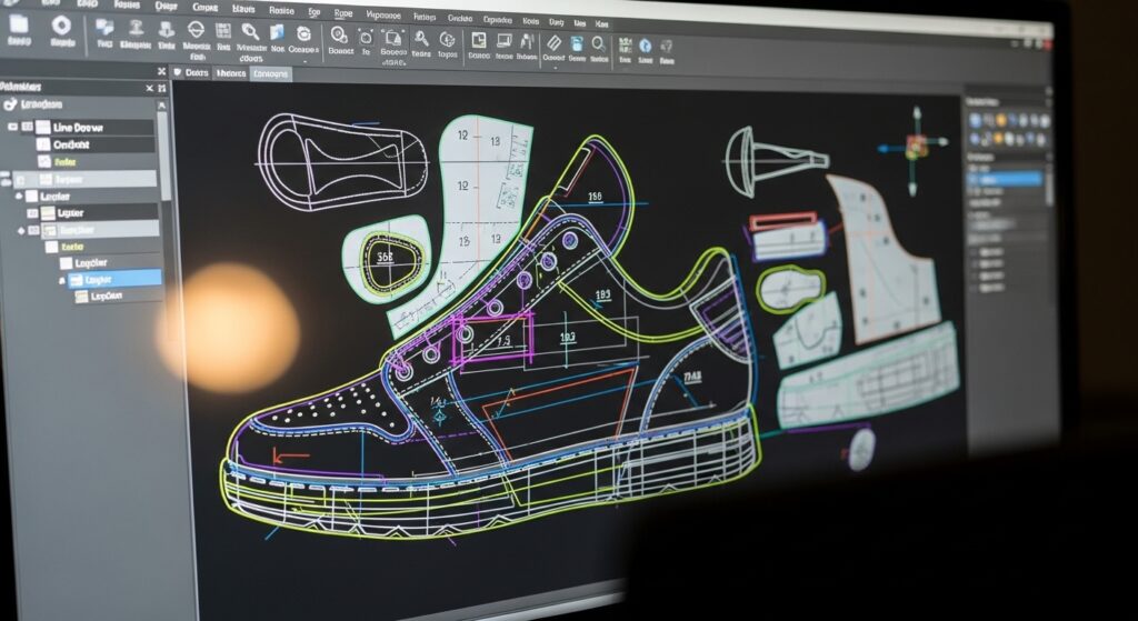 - Precision Pattern Engineering: The foundation of a great-fitting shoe. We use CAD (Computer-Aided Design) software to create digital patterns, ensuring millimeter-perfect accuracy and consistency across every single size.